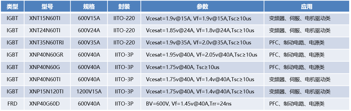 At present, the core energy insulated IGBT has two package forms, IITO-220 is compatible with the traditional TO-220, TO-220F package form; IITO-3P is compatible with the traditional TO-3P, TO-247 package. The following is a list of the core products of this series, for more information, please contact us at the core company!